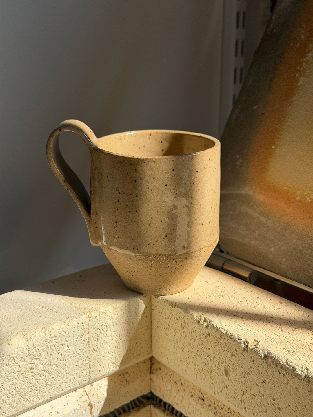 The result is a cup with a glazed interior and a partially raw exterior — two finishes, one piece, built entirely from a slab.